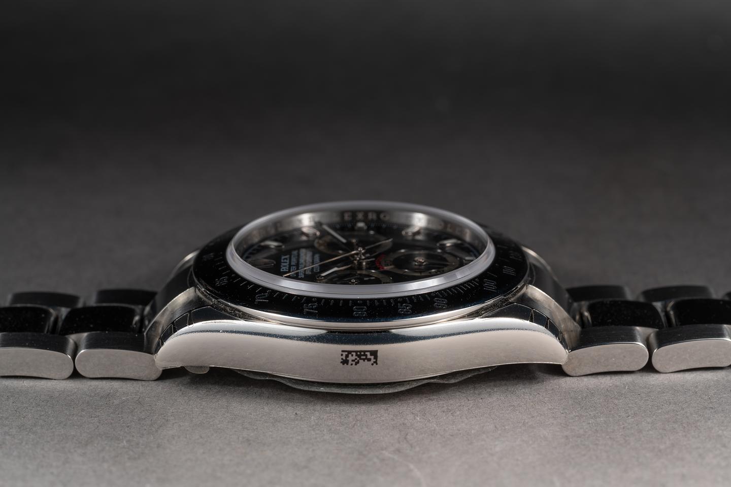 Case: The case and bezel are in mint unworn condition with all factory protective stickers still in place.