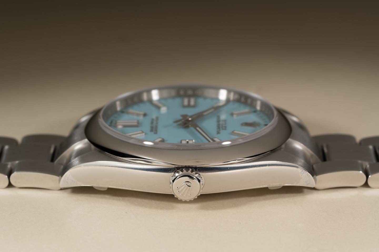 Dial: The turquoise dial is mint and the original factory hands are matching.