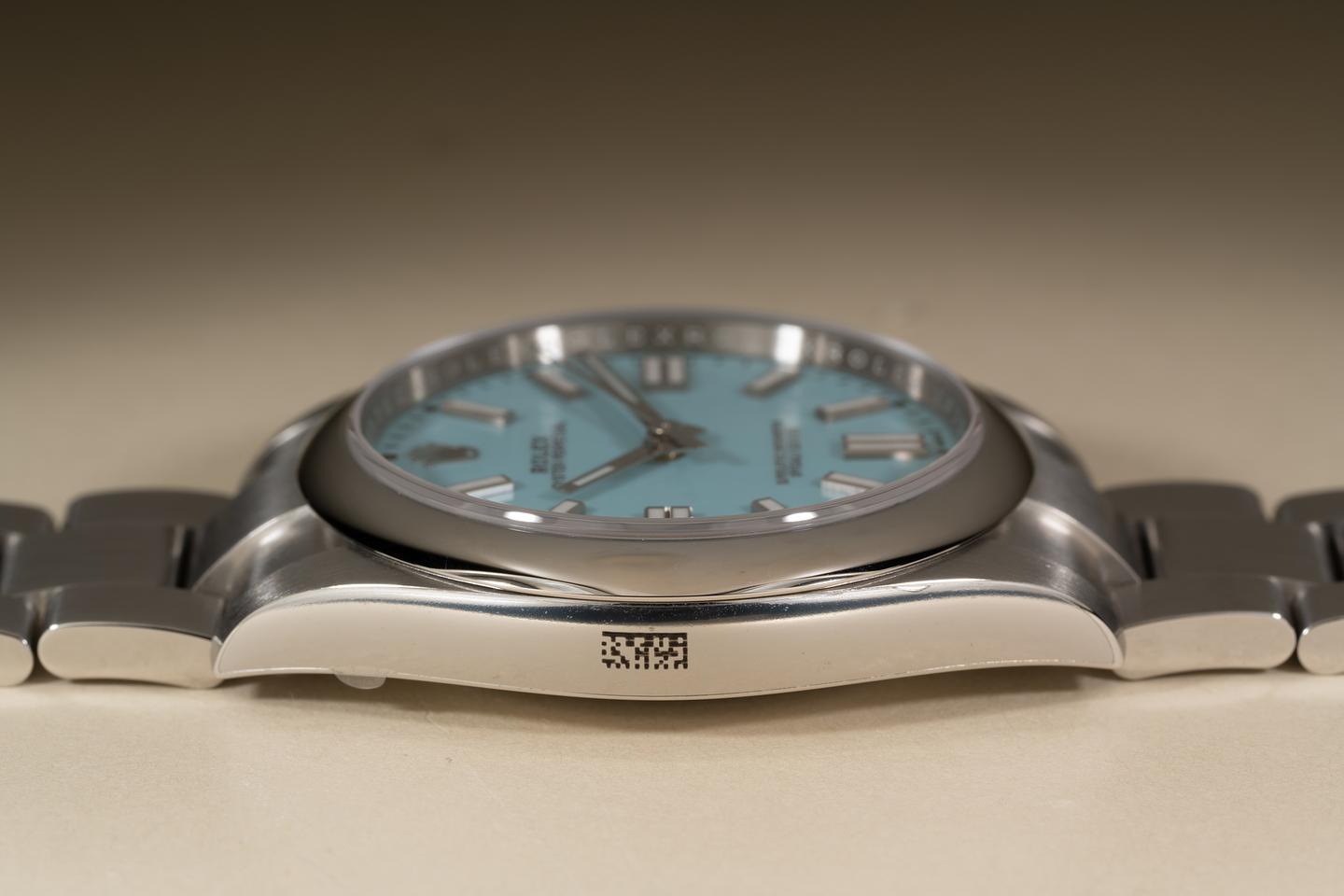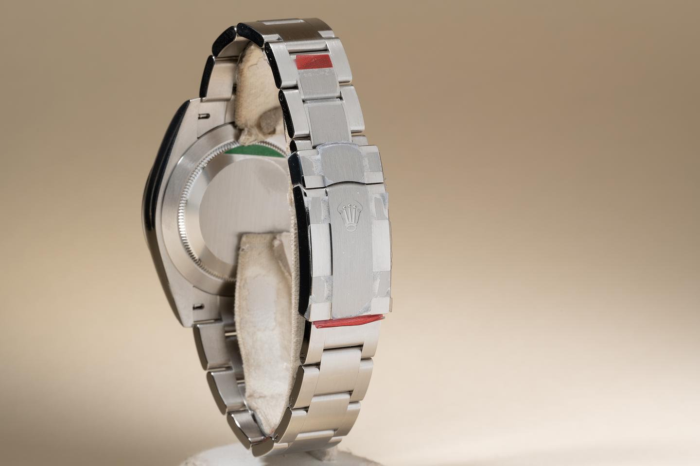 Bracelet: The 12 link oyster bracelet is mint with the factory protective stickers still in place.