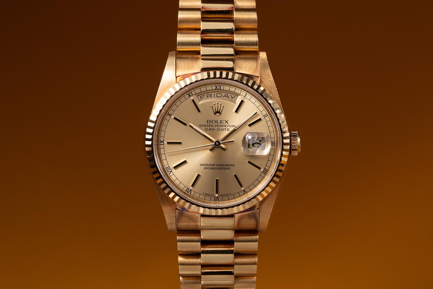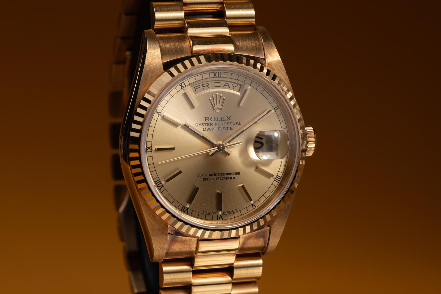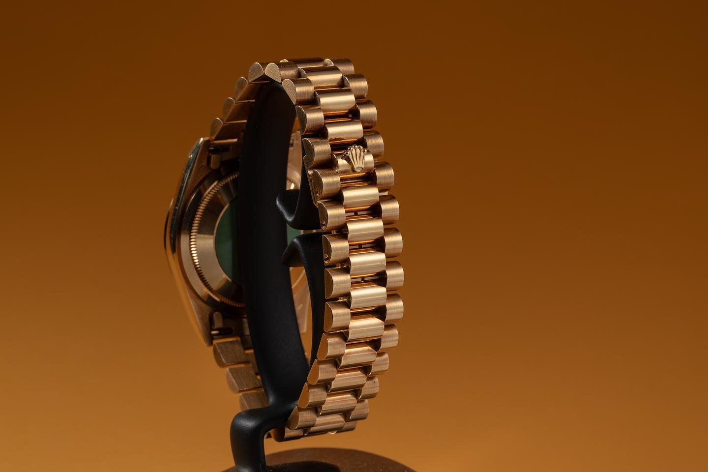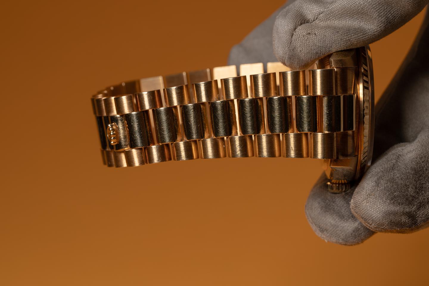 Bracelet: The 22-link 18K yellow gold President bracelet is excellent, showing no perceivable stretch.