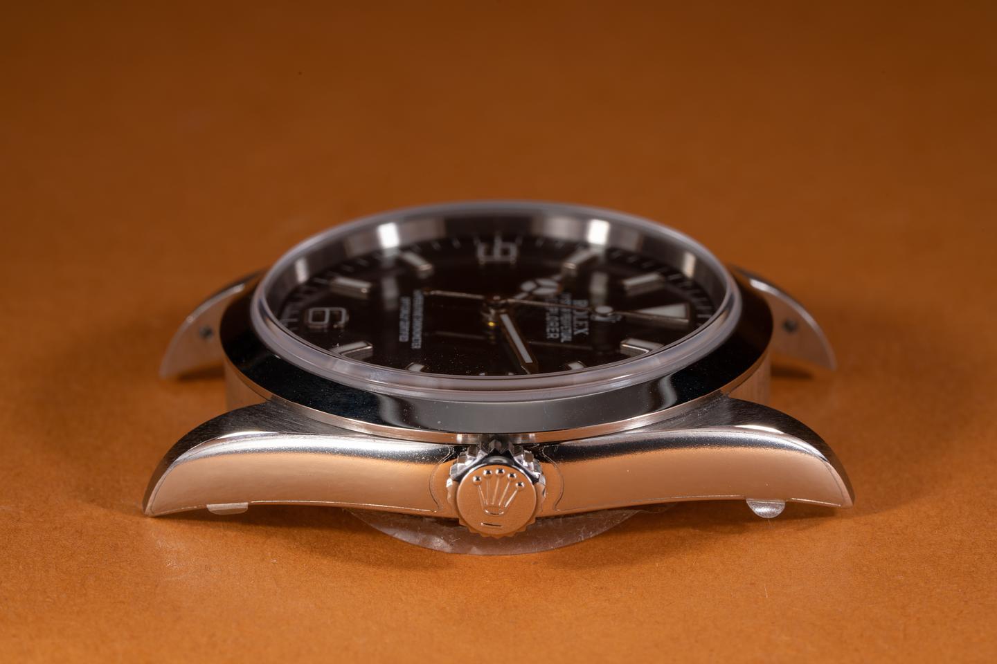 Dial: The glossy black 3, 6, 9 dial is mint and the original factory hands are matching.