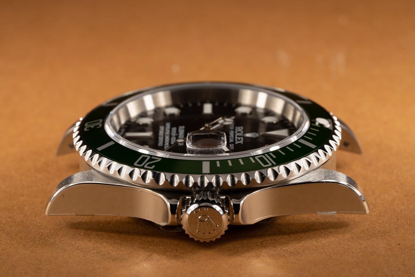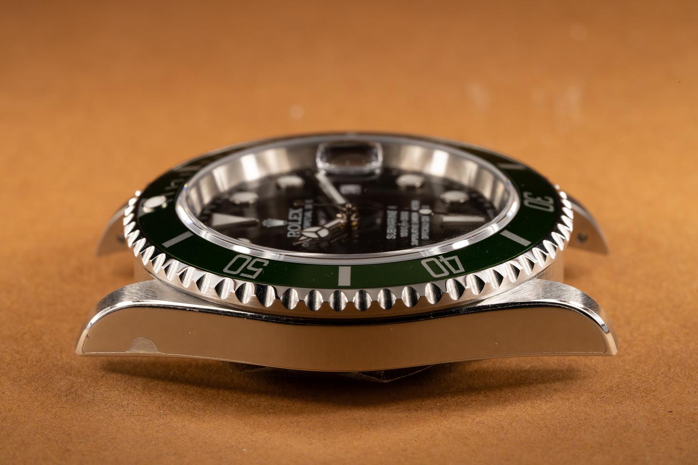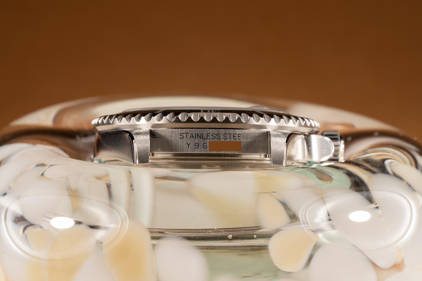 Case: The case is in mint condition with the factory stickers still in place. The flat "40" green bezel is also in mint condition.