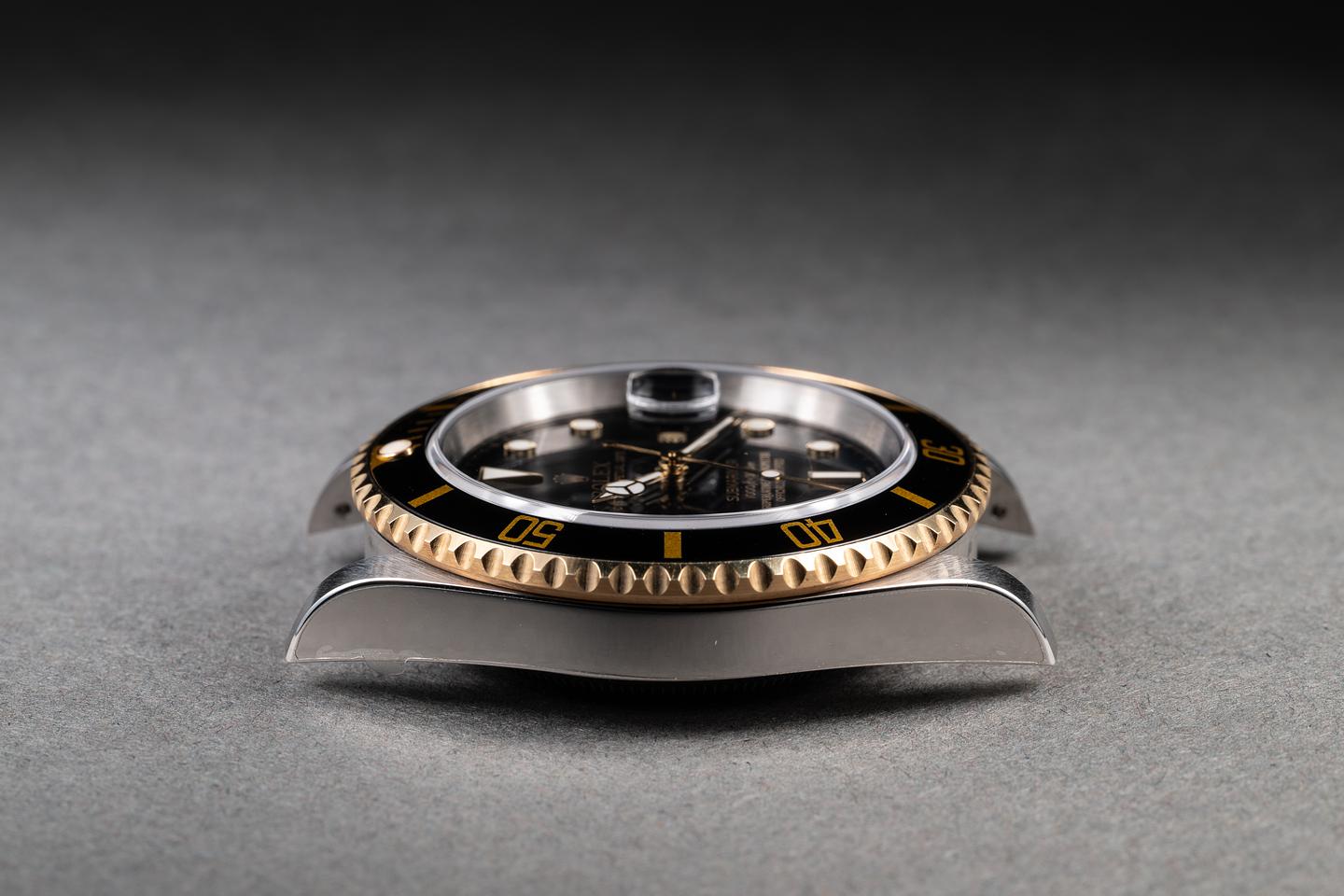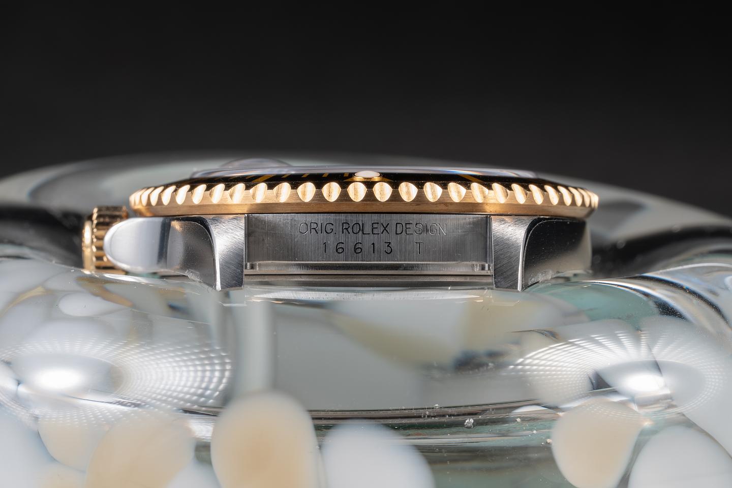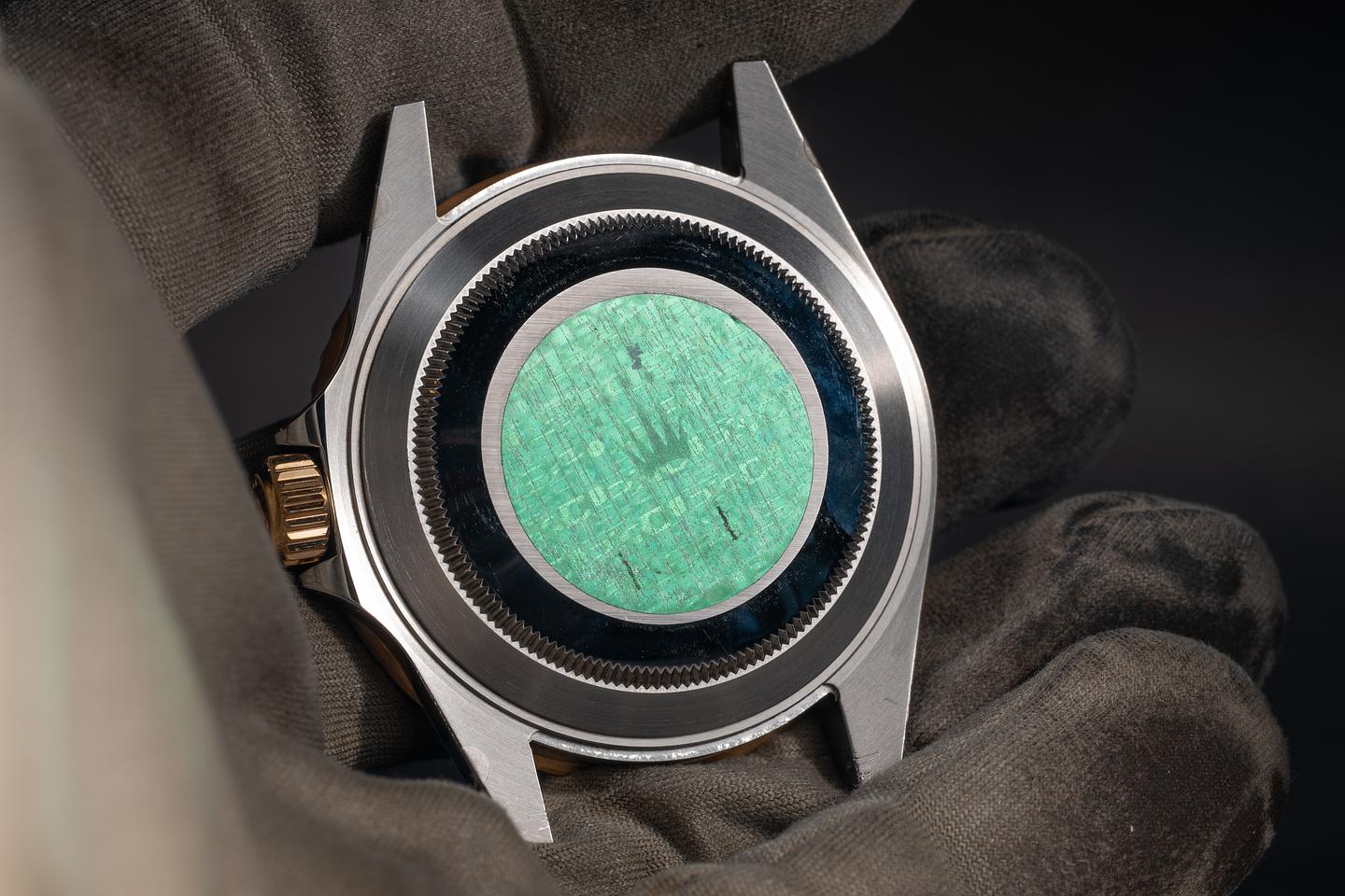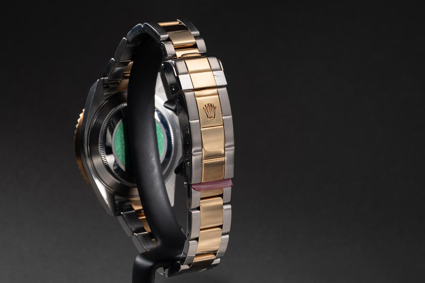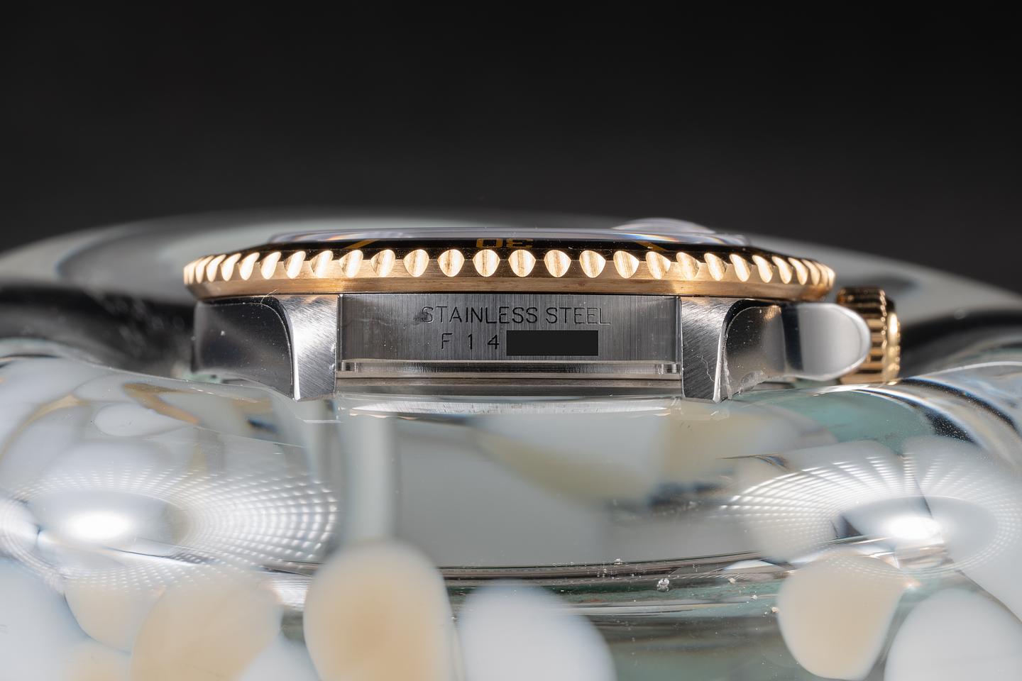 Case: The case is mint with the factory protective stickers still in place. The black bezel is also in mint condition.