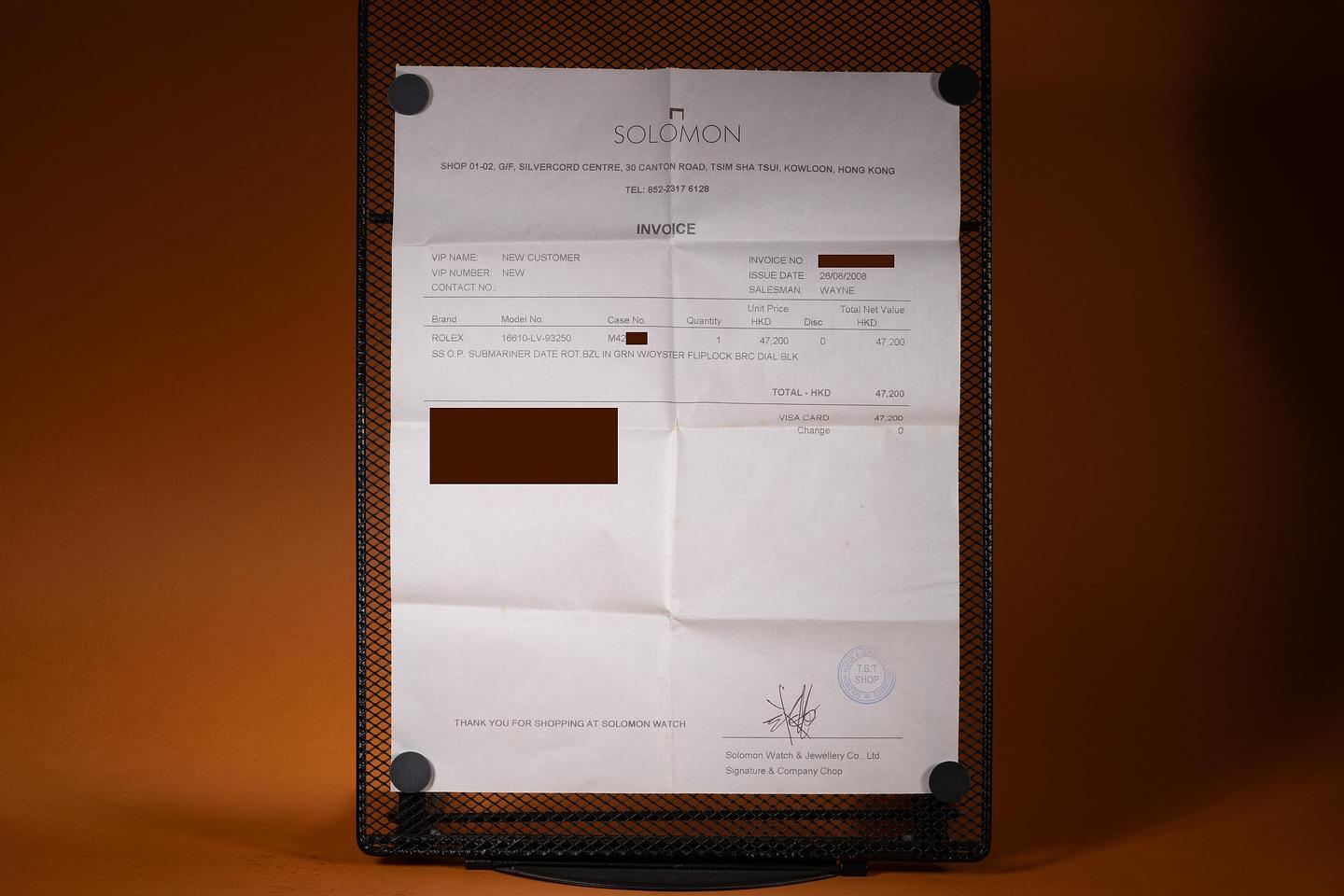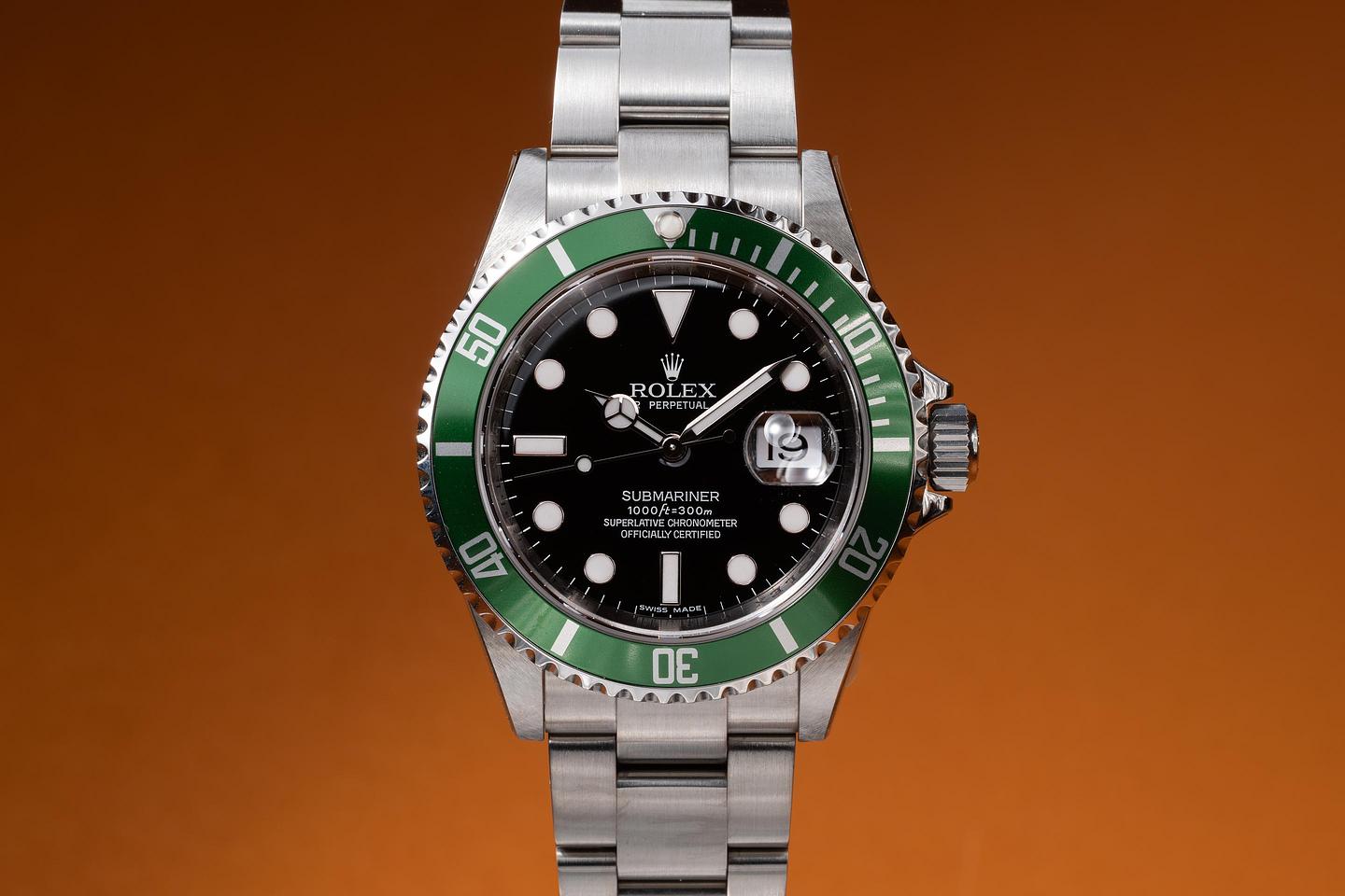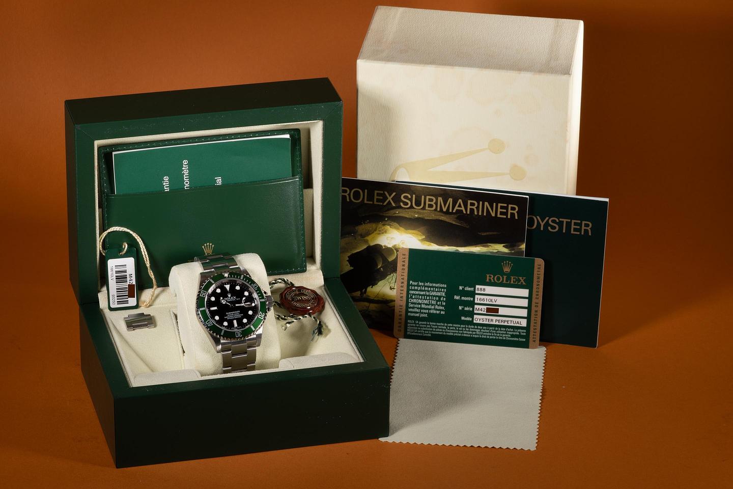Case: The case is in mint, unworn condition with the factory protective stickers still in place. The green bezel insert is also in mint, unworn condition.