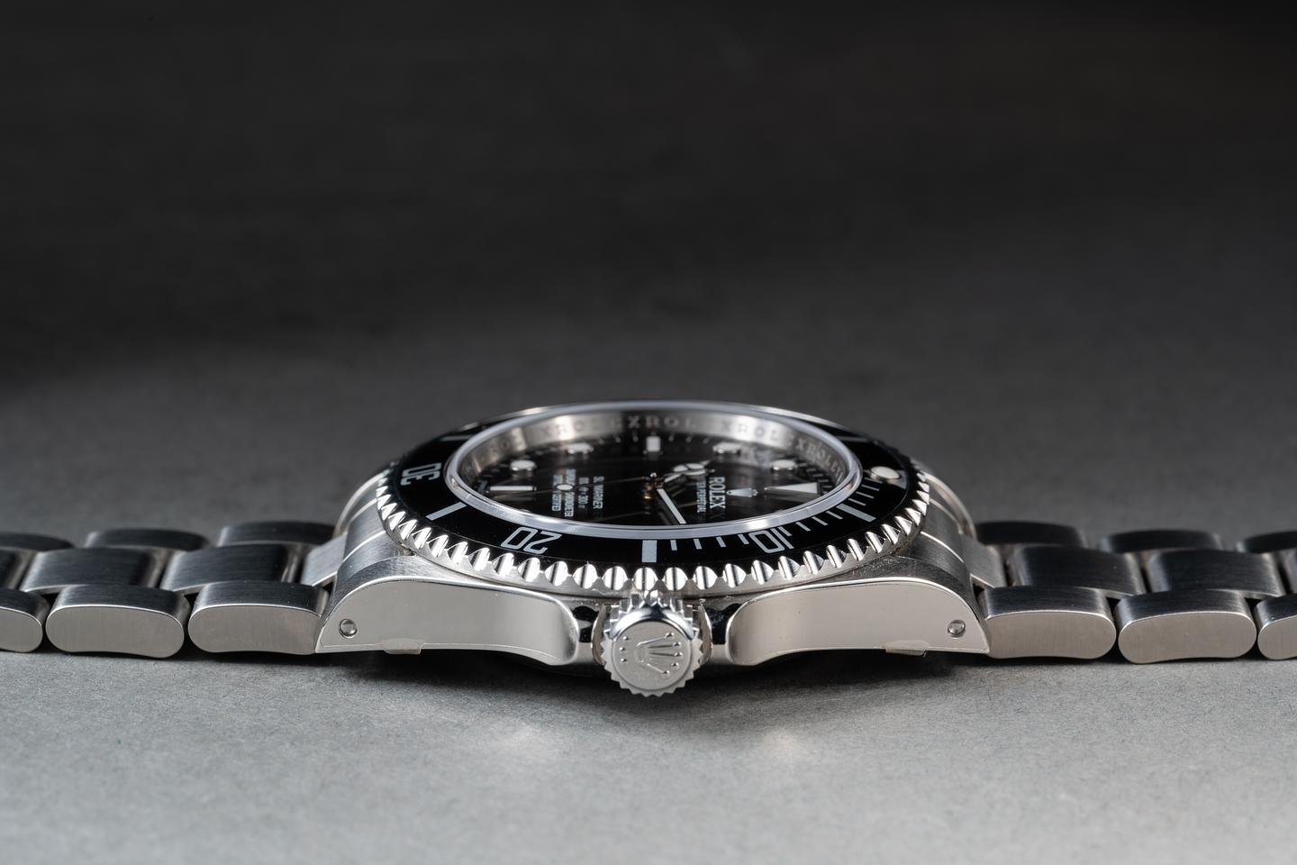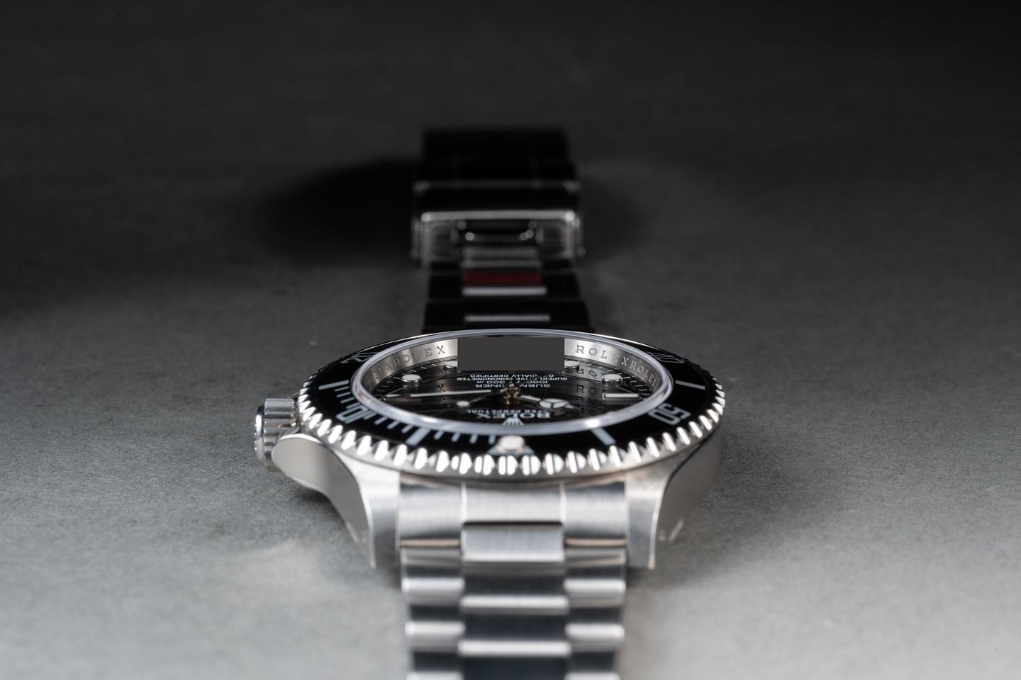 Case: The case is mint with the factory protective stickers still in place. The black bezel is in mint NOS condition.