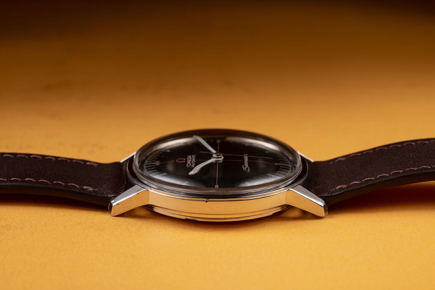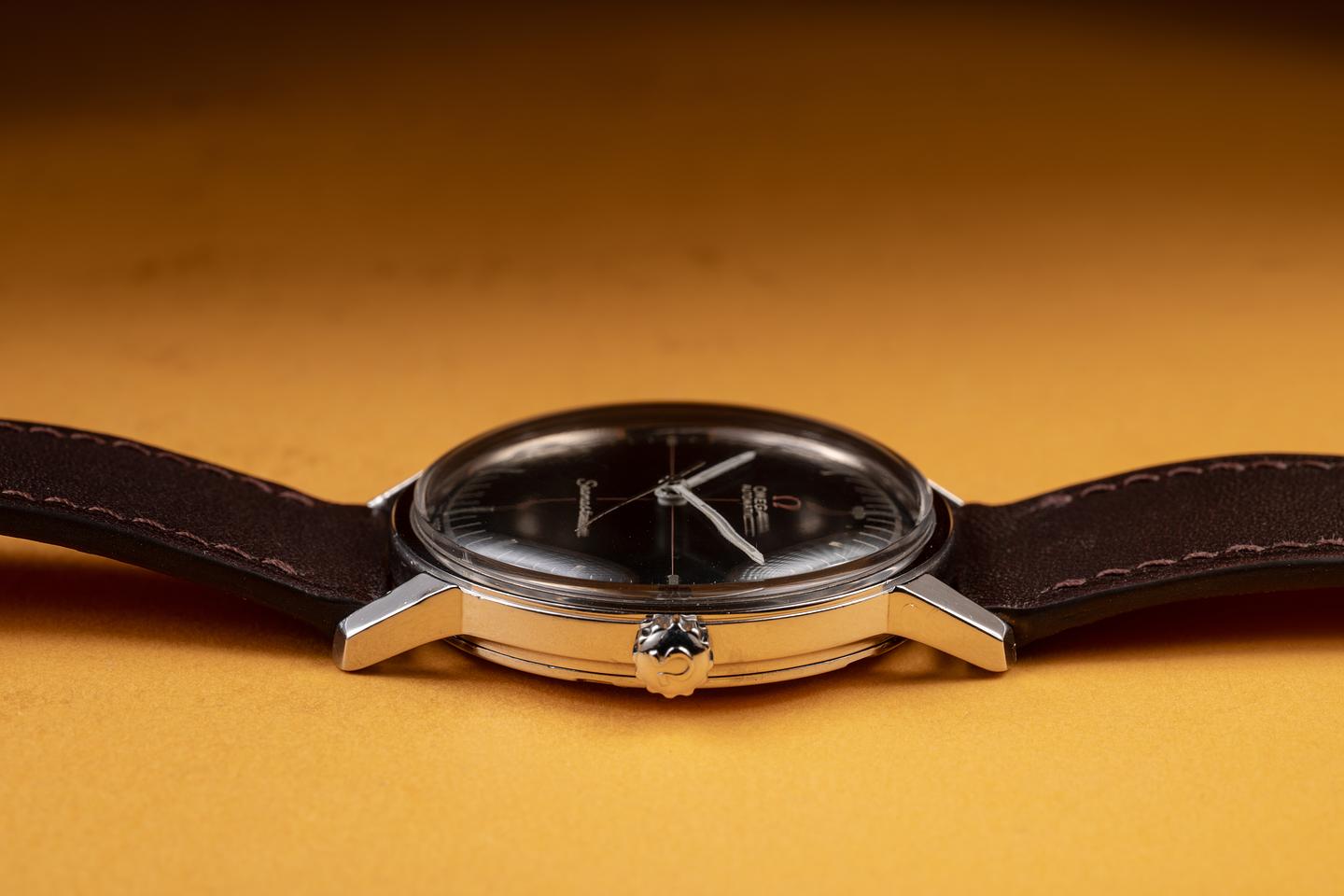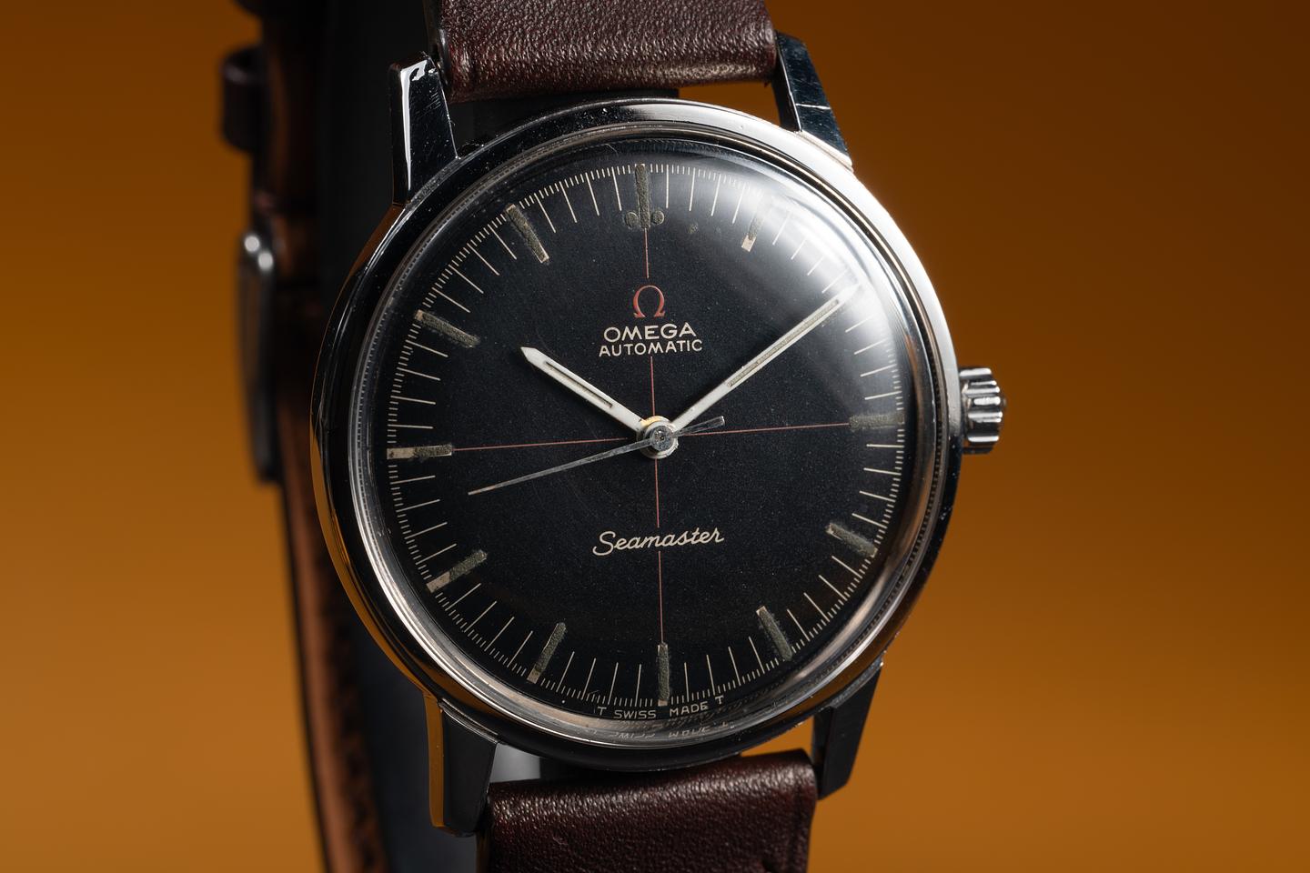 Dial: The black w/red cross hairs dial is excellent, showing only light wear for its age. The lume has aged to a dark charcoal tone, and the hands, which appear to be original to the watch, have aged to a warm, cream hue.