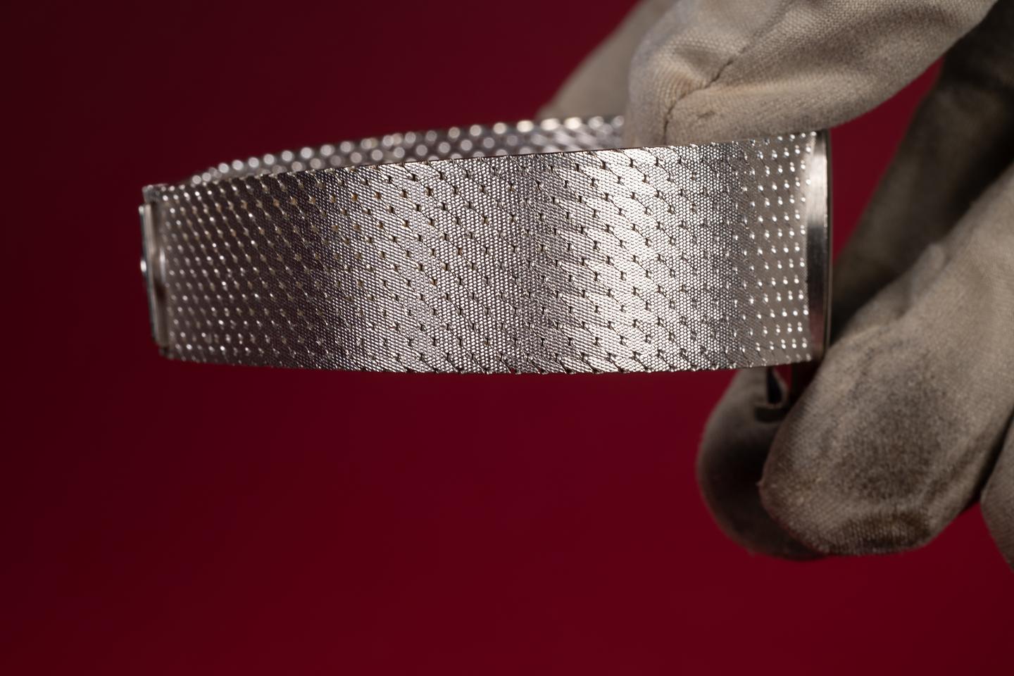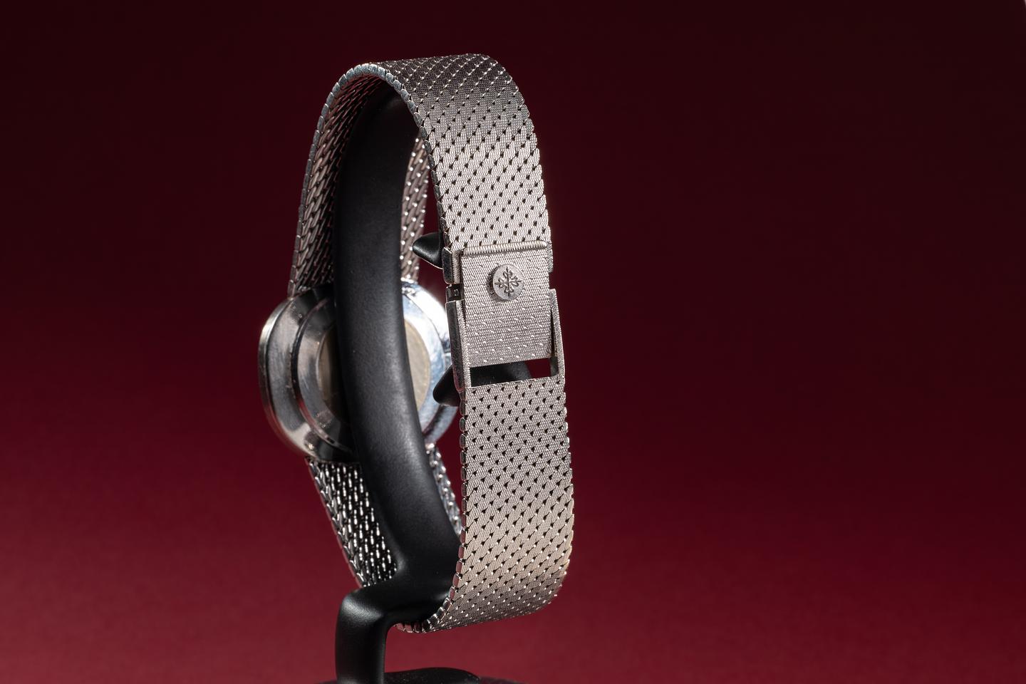 Bracelet: The 18K white gold mesh bracelet is excellent, showing little if any stretch for its age. The bracelet will fit up to a 7.25" (18.4cm) wrist.