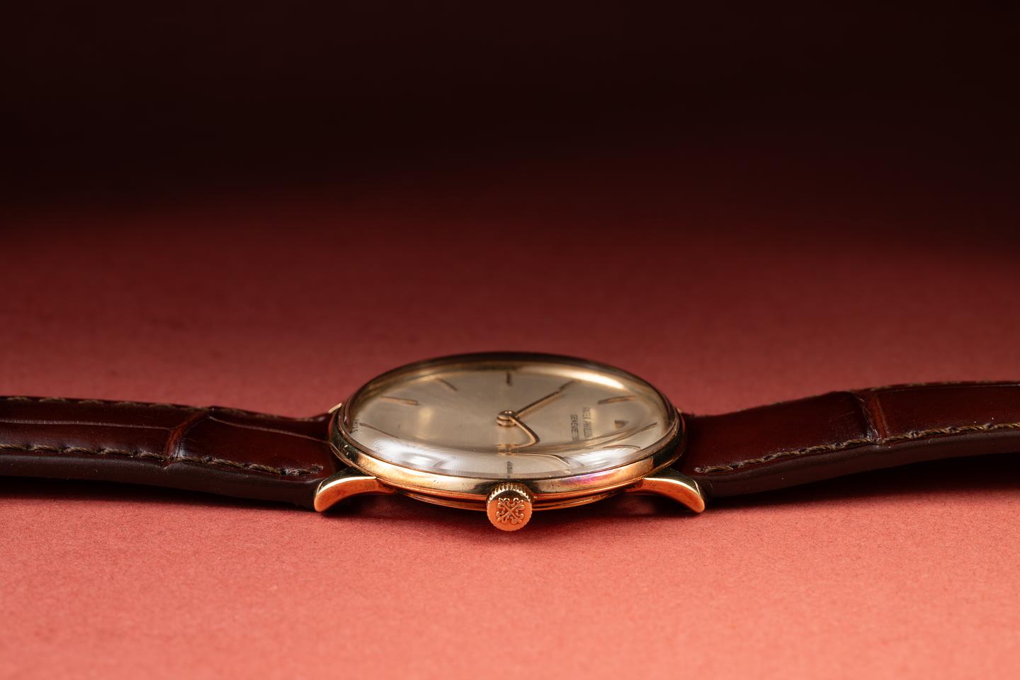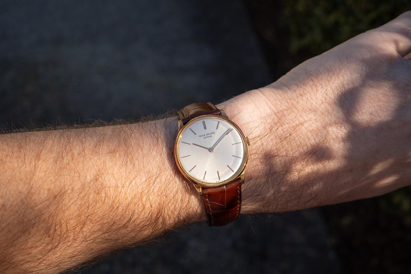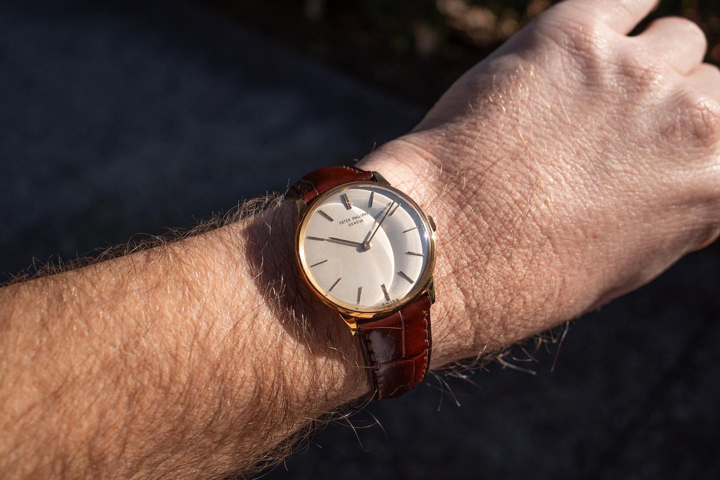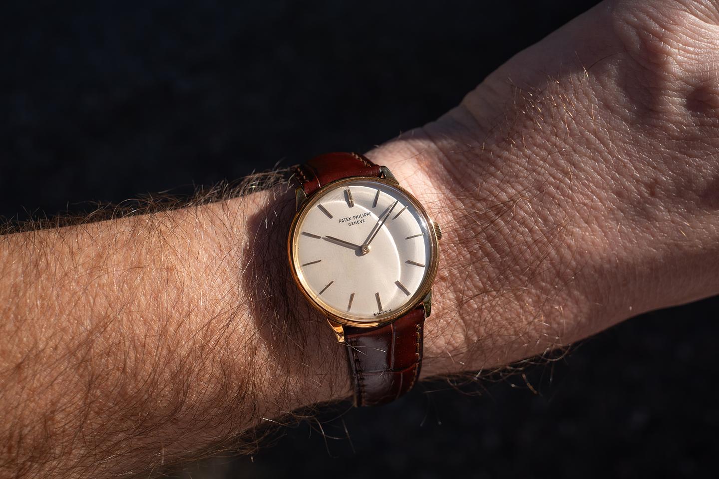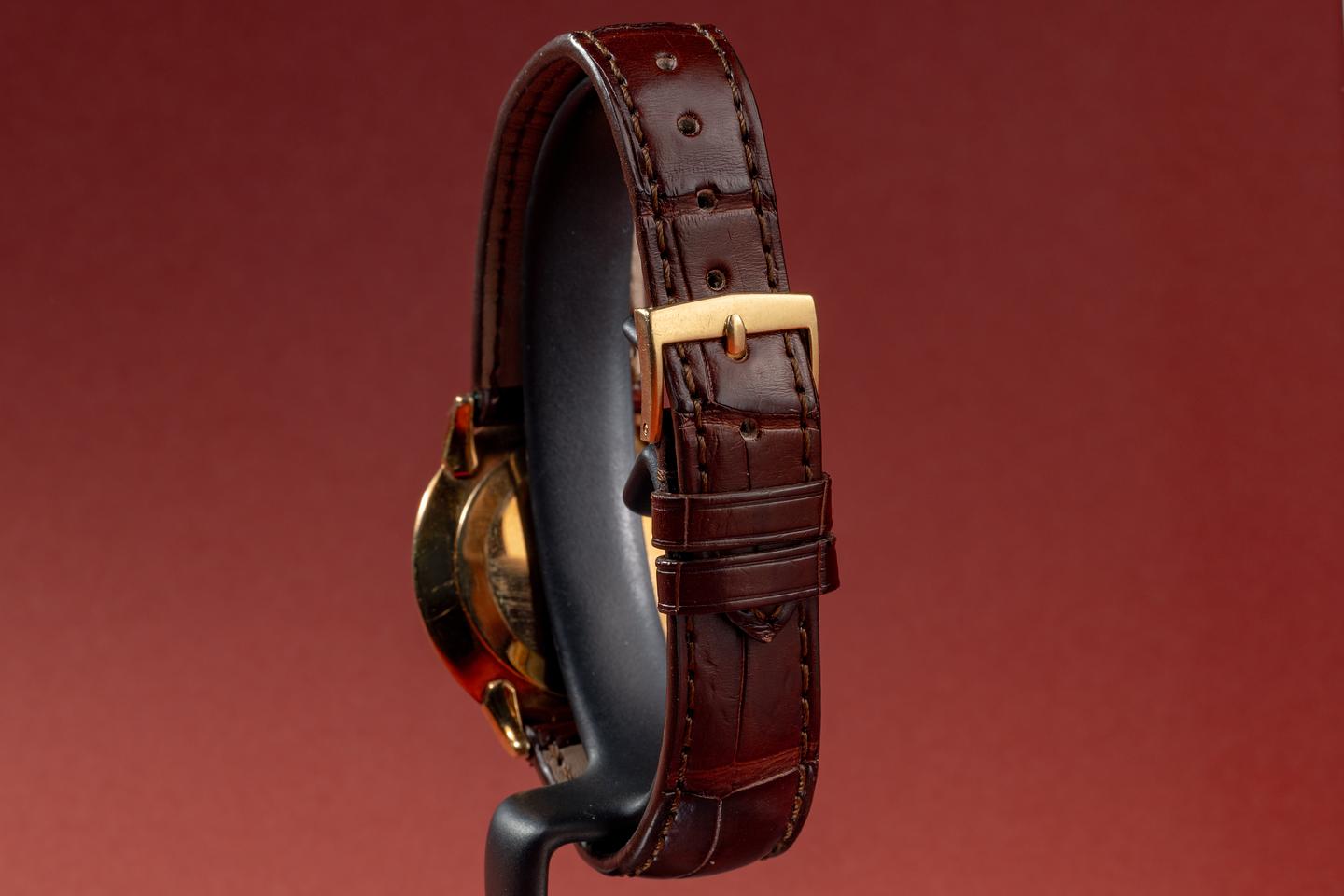 Bracelet: Brown leather Patek Philippe strap showing only very light wear.