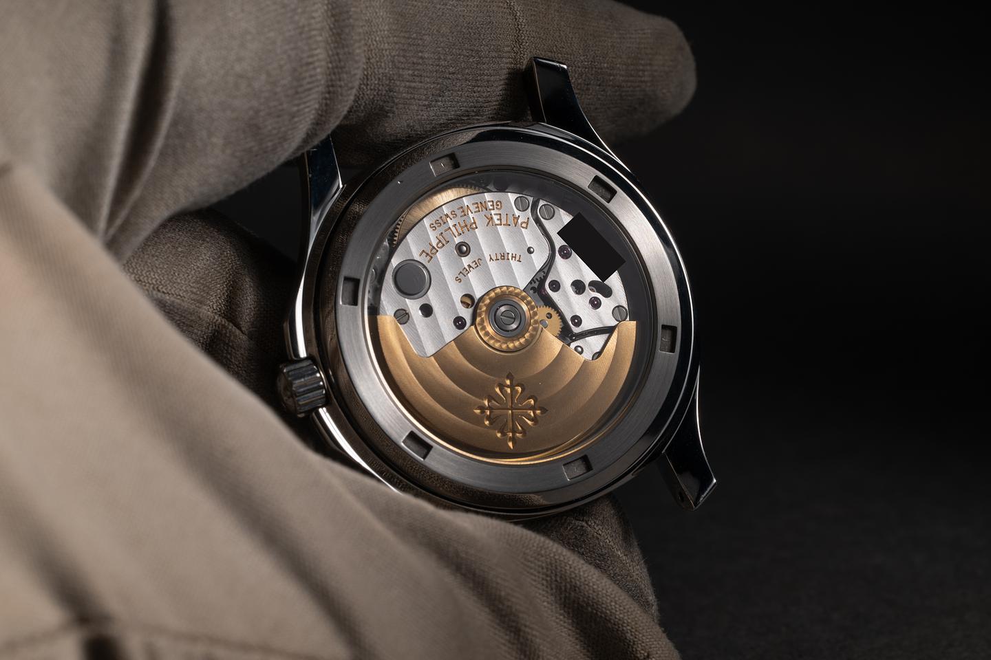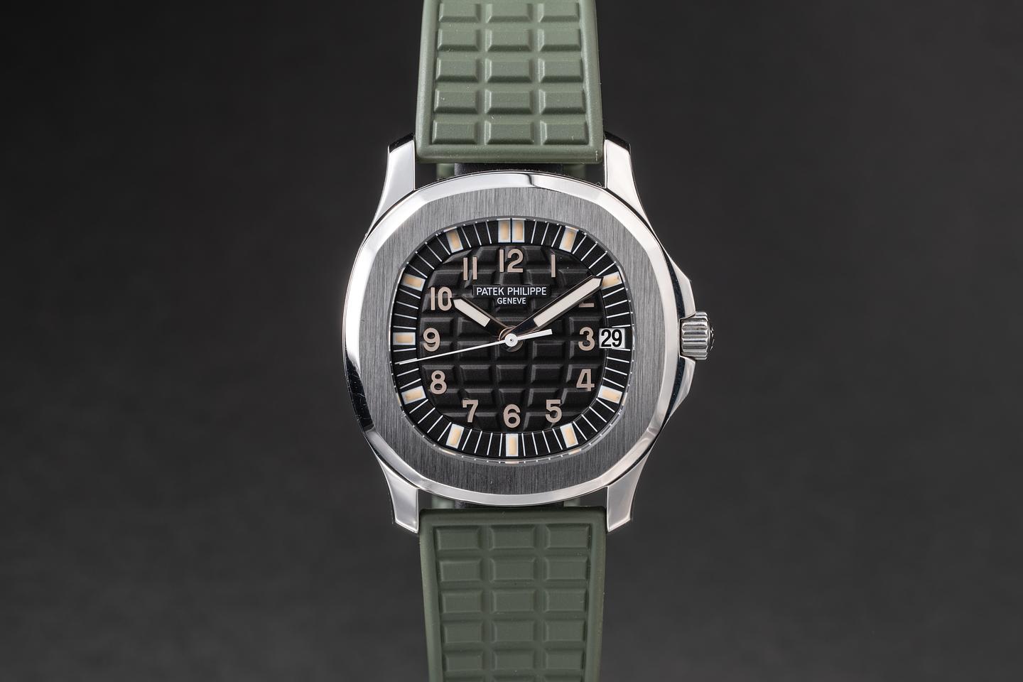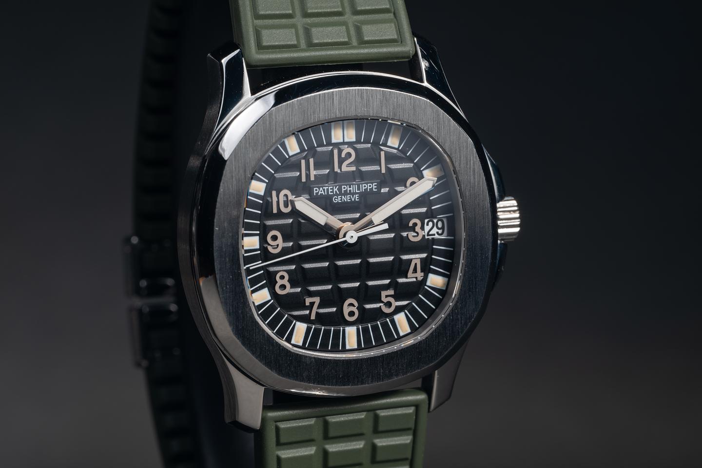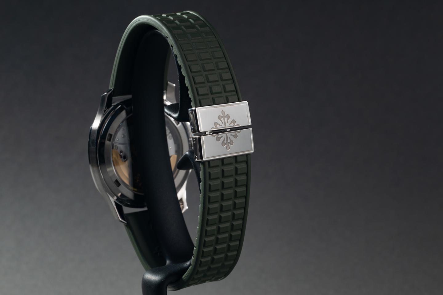 Bracelet: Excellent green rubber Patek strap with Patek deployment clasp.
