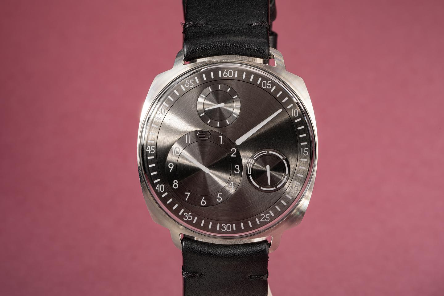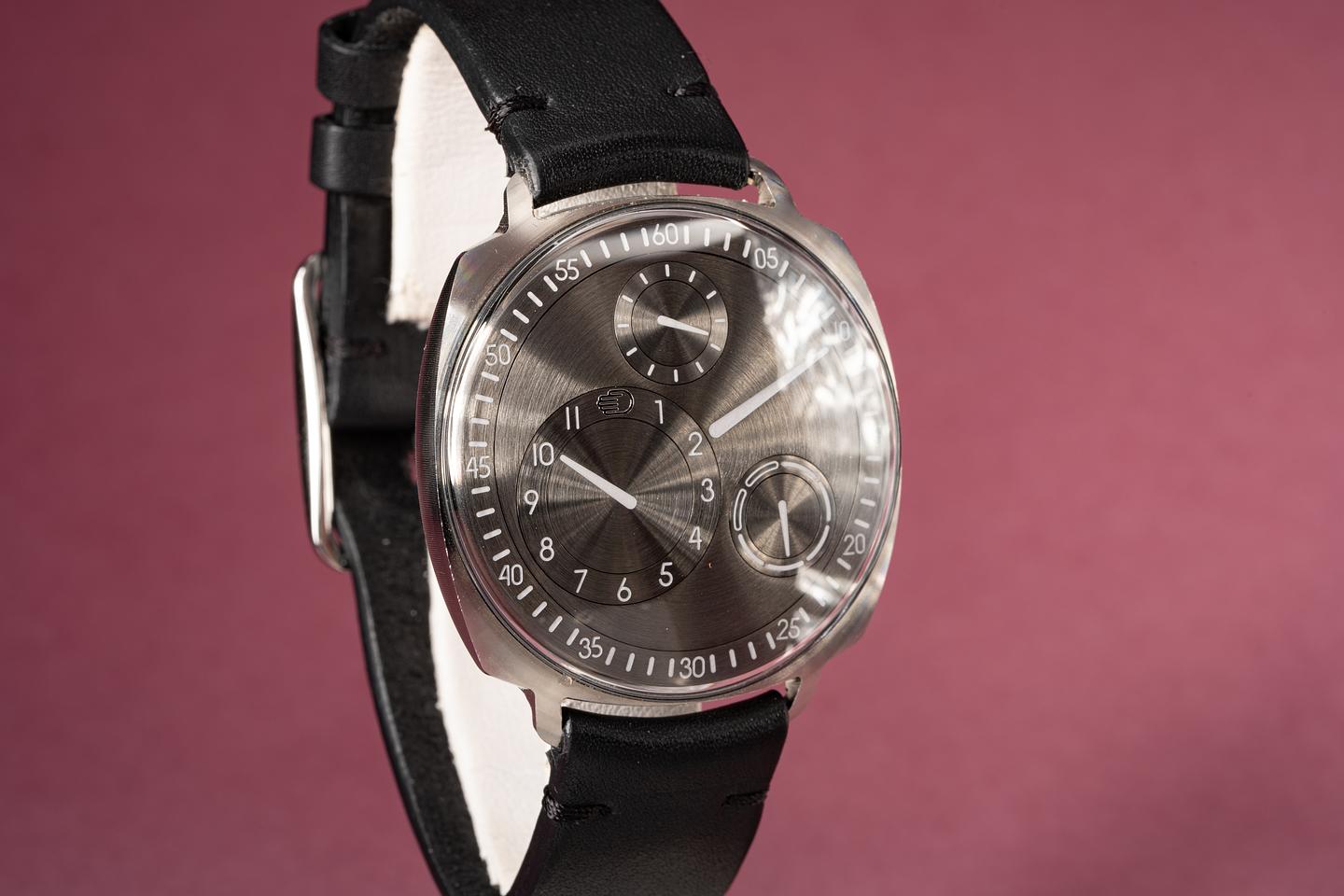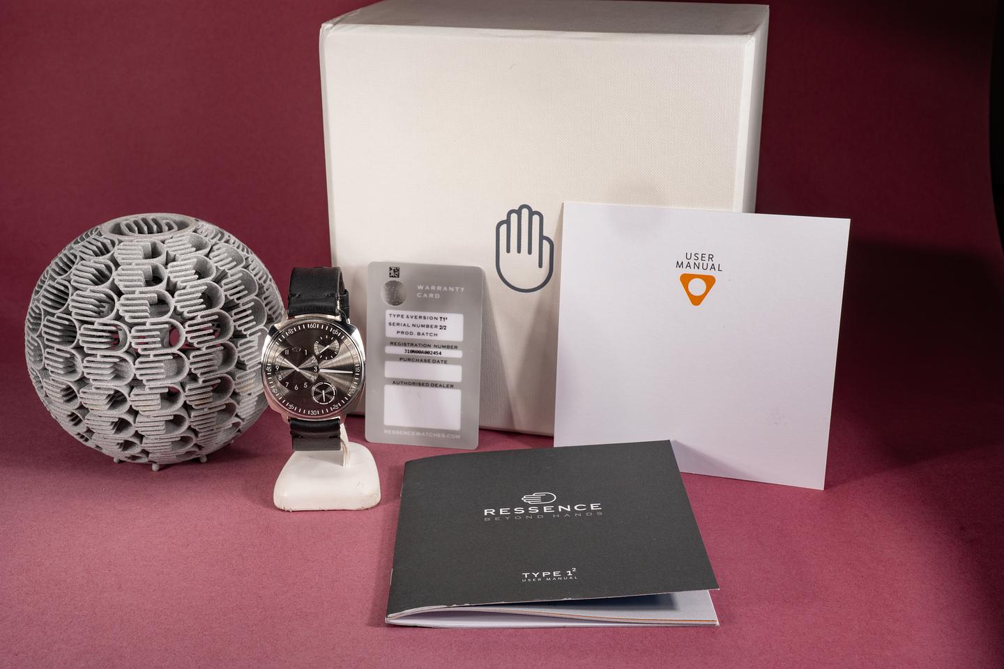 Notes Super limited edition, possibly an early prototype of the Ressence Type 1 Squared. The case has a semi-matte finish as opposed to the later case that are highly polished. In addition, the dial is missing the orange accents usually found on the day dial.
