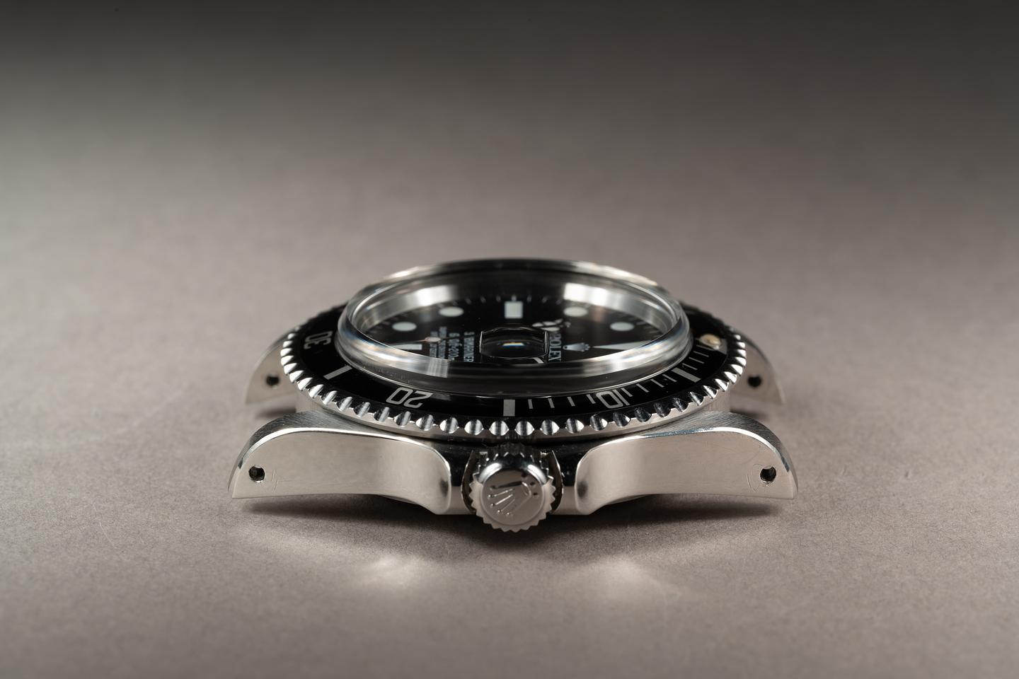 Case: The unpolished service case is excellent showing sharp prominent bevels and some light wear from use. The black service bezel insert is also in excellent condition showing only light wear from use.