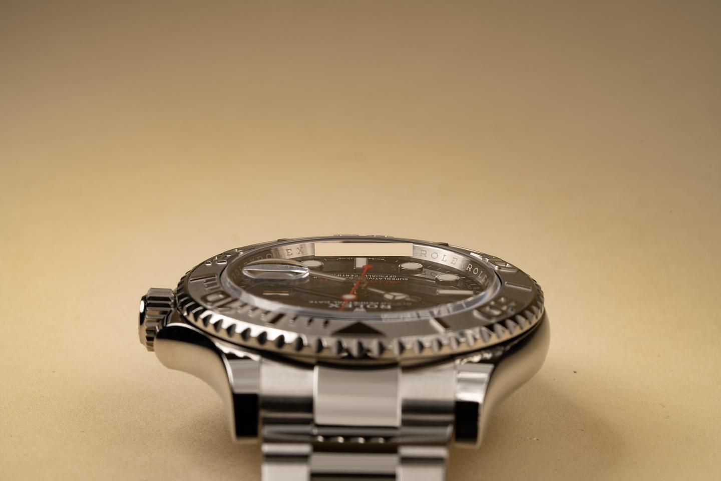 Case: The case is excellent and shows only extremely light shop wear. The platinum bezel is also excellent showing extremely light shop wear.