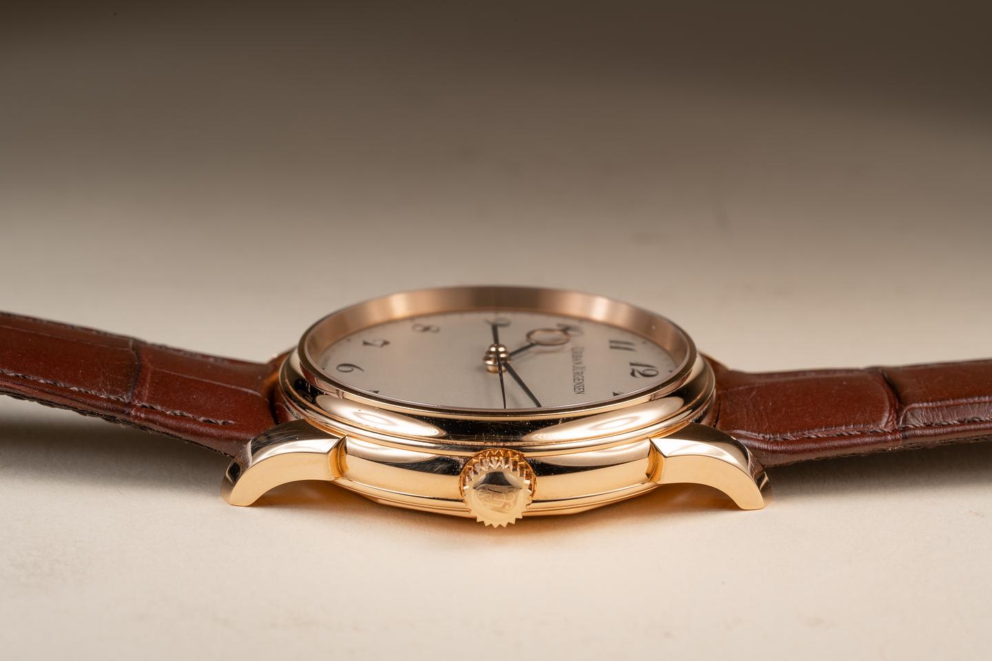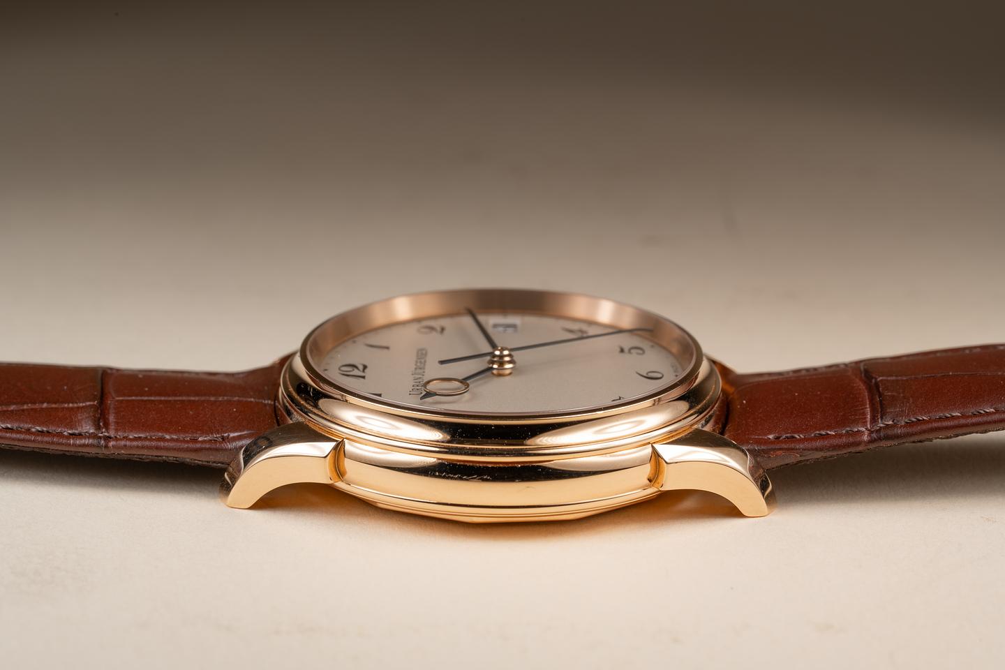 Case: The 40mm 18K rose gold case is excellent showing only very light wear from use. The 18K rose gold stepped bezel is also in excellent condition showing only very light wear.
